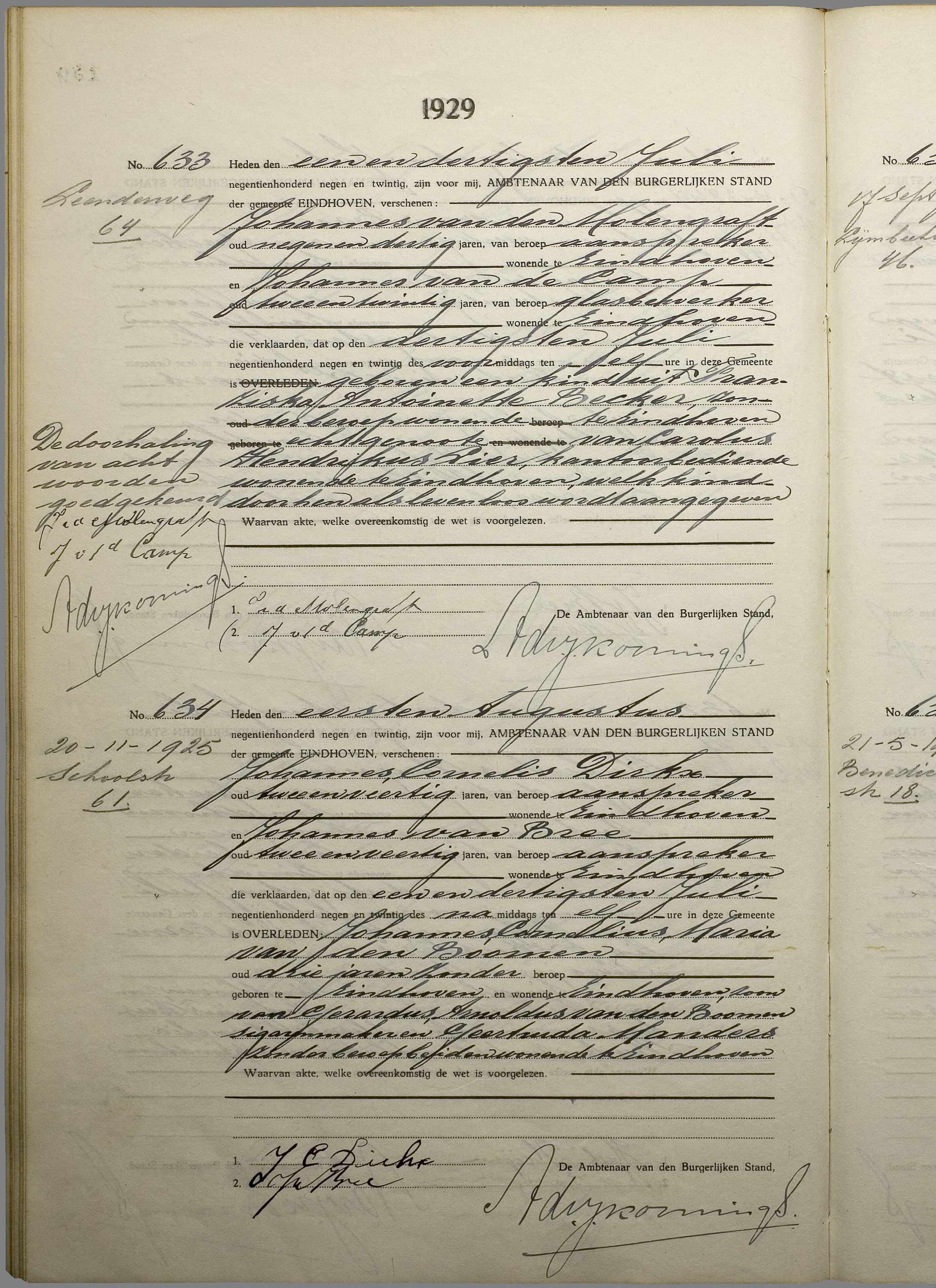 | Notitie bij overlijden Overlijdensakte 634 EHV 1929 |